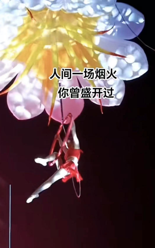 据悉,当天这场表演中设置了一个精彩纷呈的高空节目,女演员按照既定流程缓缓升空,在巨大的花朵装饰下翩翩起舞。