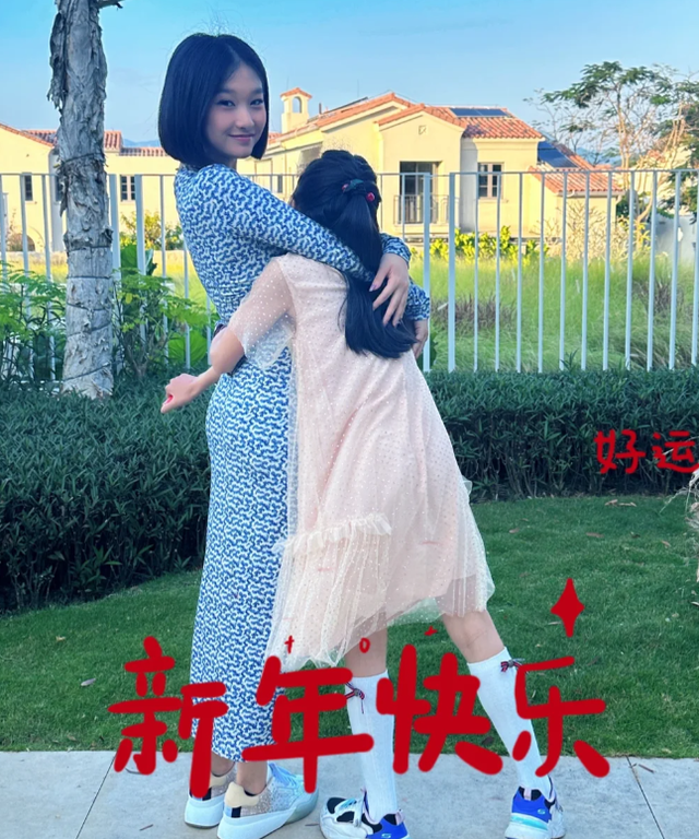 除了晒与父母合照外,爱马还公开了妹妹哎呦喂正脸照,一眼看去,哎呦喂和姐姐爱马长得很像,姐妹两个虽说五官都像爸爸,但神韵还是像妈妈的,出落的很好。