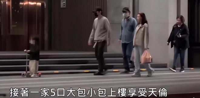 Rhea自己骑着手扶滑板车在前,家人则跟在后面,画面温馨且有爱。