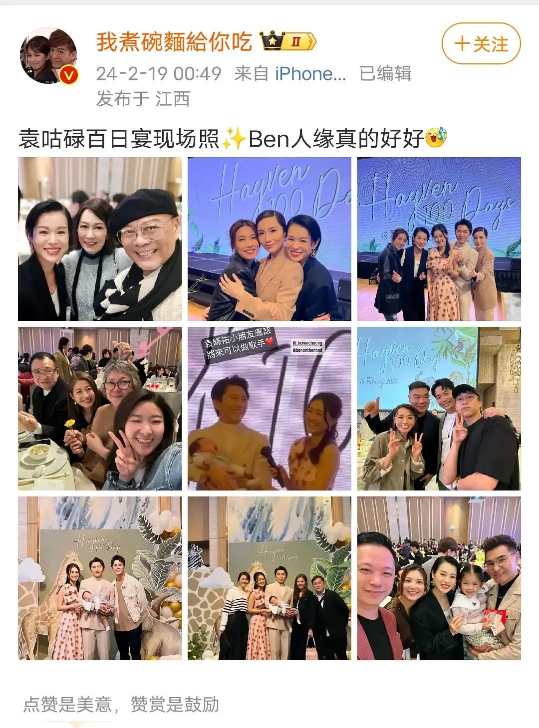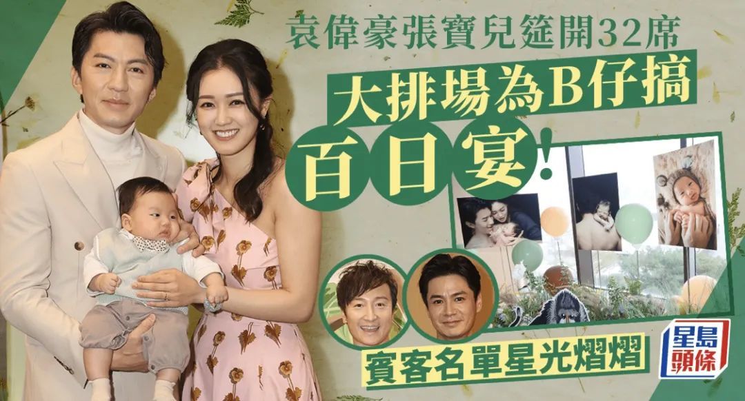 香港特别看重小朋友的百日宴,圈内很多明星夫妻都有操办的习惯,袁伟豪(ben)、张宝儿夫妻俩也不例外。