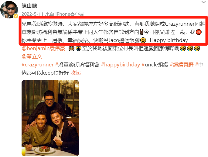 更何况,站在C位的视帝陈山聪跟他是十几岁就认识、一起往上爬的好兄弟。
