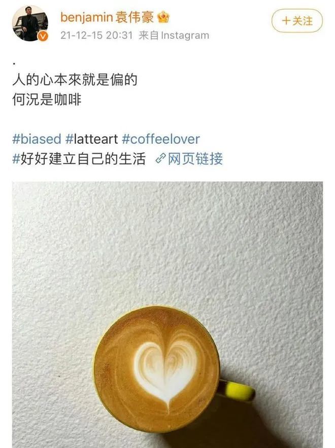 经常会发咖啡配图的袁伟豪,这次的文案却颇有深意⬇️