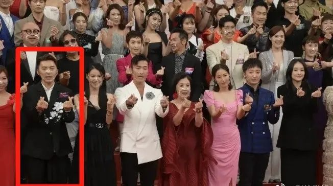 汪明荃和曾志伟站在头排高层正中的重要位置,第一排C位是陈山聪和唐诗咏,旁边就是袁伟豪。