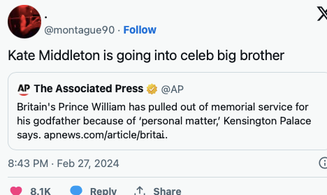 这些捕风捉影的猜测,如今在凯特消失后,靠吃瓜群众的纯粹想象力,演化成了八百集都演不完,人人都能占卜到剧情的俗套连续剧: