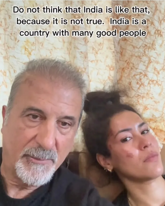 看着他们脸上的伤,很多人可能已经猜测到发生了什么,在前几天的一个晚上,她和老公在印度旅行的时候,遭遇到了危险。