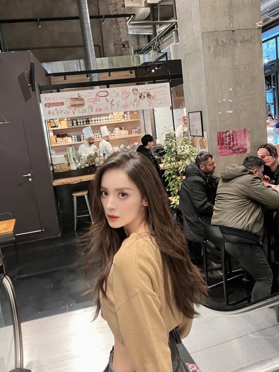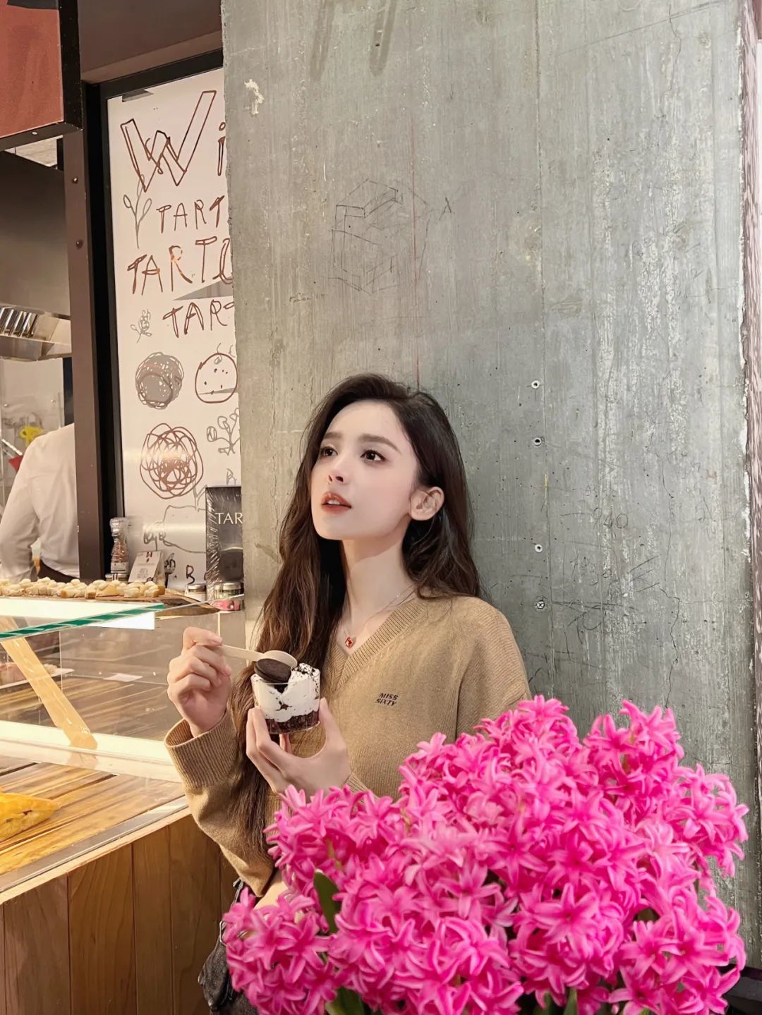 从拍摄场景不难看出,这应该是米兰的一家甜品店,简简单单的场景,就能拍出美美的照片,可见古力娜扎的颜值有多养眼。▼
