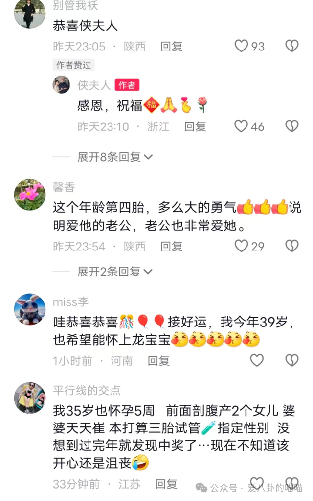 杜星霖发文,来接好孕吧,42岁喜迎龙宝宝,孩子是上天的馈赠,是福报,还打出了双手合十的表情。