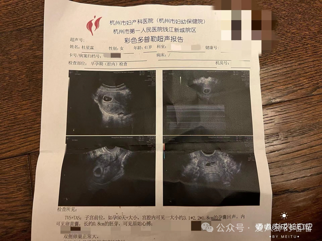 B超检测报告也有,给出的结果,也是怀孕,而且已经怀孕了50天,在图片的右下方,还配有“嘟嘟的成长日记”这样的字样。