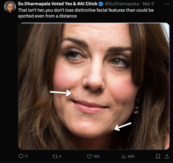 “(下图)这才不是凯特…无论如何你的面部标志性独特特征(色素痣和凯特的酒窝)可不会随意消失,记得过去我们可是远远都能看到。”