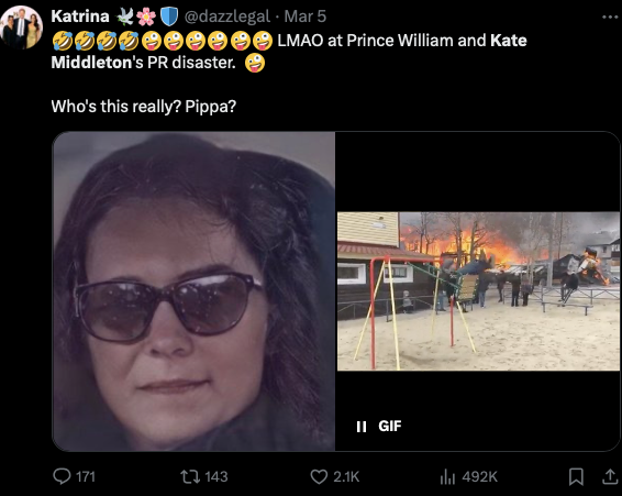“哈哈哈哈哈看看威廉和凯特的公关灾难。