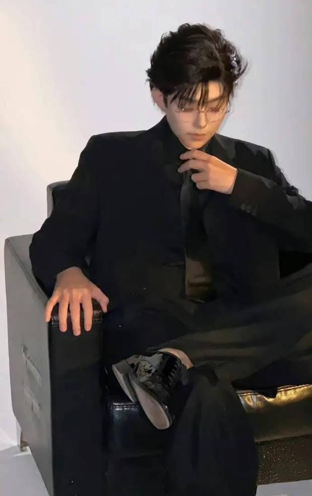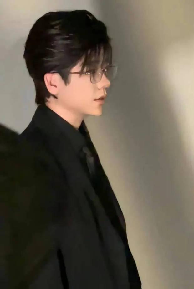 李诞穿黑色西装,戴金丝眼镜十分年轻。