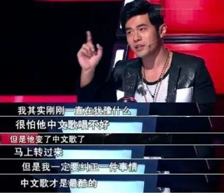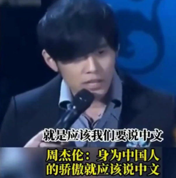 有一次在台上,主持人说周杰伦的歌在韩国很受欢迎,让他说两句韩语感谢粉丝,但周杰伦没有说,反而是说他觉得中国人就应该说中文,不要崇洋媚外,并开玩笑说,这就是为什么他英文不好。