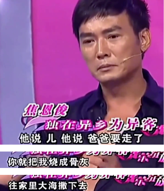 临走之前跟焦恩俊说,把他的骨灰带回家散在大海上,他就回家了。
