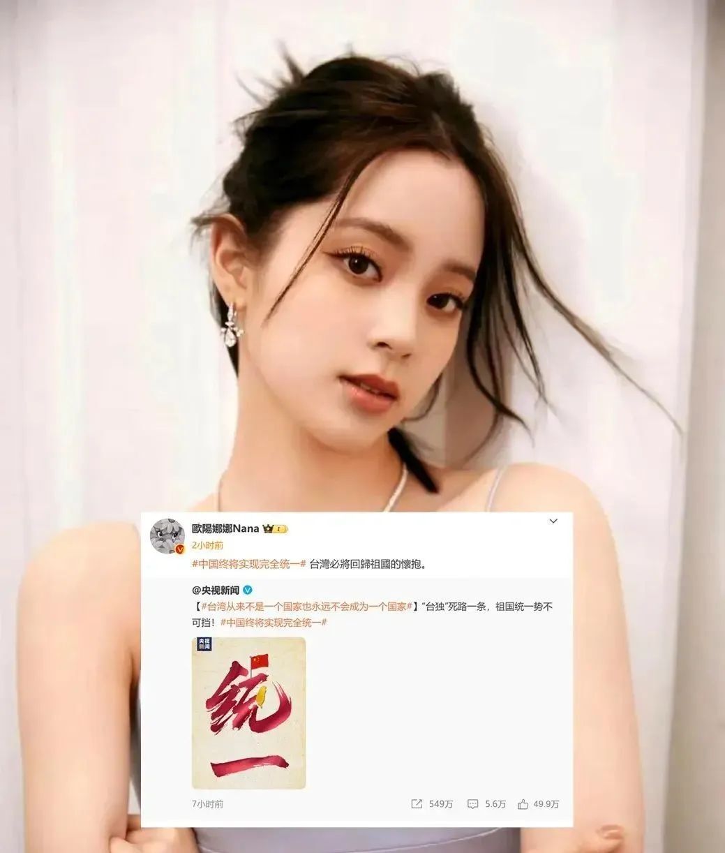 比如欧阳娜娜和张韶涵,这次她们两位都是第一时间转发表态的台湾艺人,欧阳娜娜更是三姐妹都发了。