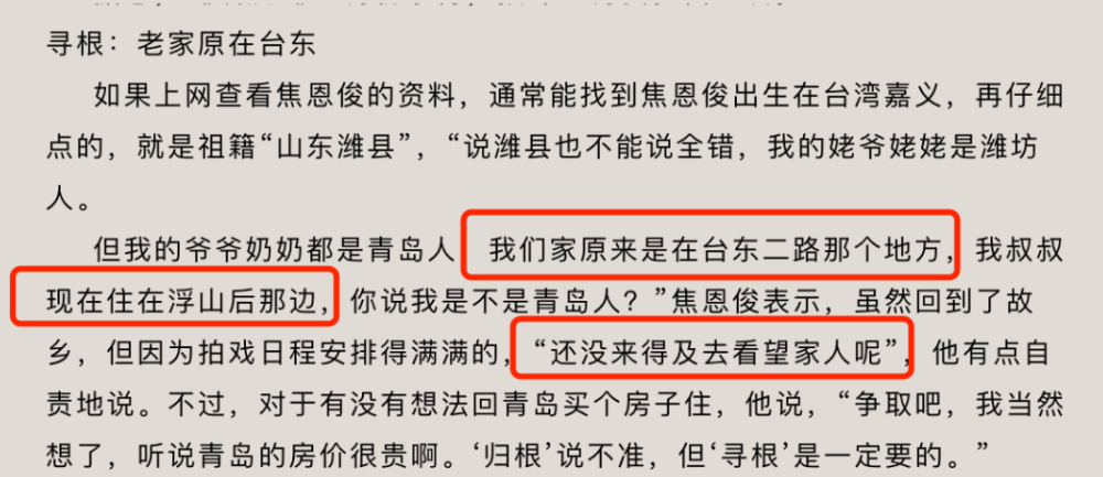可能也是在父辈的影响下,焦恩俊虽然在台湾省长大,但对大陆很有感情,来山东拍戏的时候就自来熟说跟他们是“老乡”,自己也是山东人。