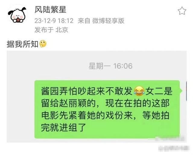 电影关于女二首先传的是杨幂,然后有人说是赵丽颖演女二,再接着说女二不是她们两位,还说是倪妮,也有可能是唐嫣,现在剧情反转,说是赵丽颖才是女二,而杨幂只是客串。