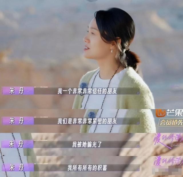 此前,朱丹在综艺节目中自曝曾被一个非常亲密的好友骗光了所有的积蓄。她透露对方在拍摄过程中遇到资金问题要周转,对方跟她说已经找到了借款方,希望她去见证这个事。之后,对方又联系到她,说自己可以把资金还上了,因为朱丹曾经见证过,这次要让朱丹再见证一次,证明他们要还上这个钱了,因为朱丹不在北京,对方说没关系,给她寄过来,结果寄过来的是一张白纸,让她在白纸上签字。朱丹称:“我就把见证人和担保人混在了一起,我就写了我的名字”。尽管此后朱丹起诉这位朋友获得了胜诉,但朱丹称,朋友宣布破产,又让她”一夜 (之间)什么都没有了,我还欠了很多钱”。