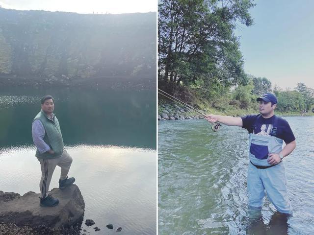 明明回国前,晒照还是徒步、钓鱼这种岁月静好的“中年三宝”画风↓