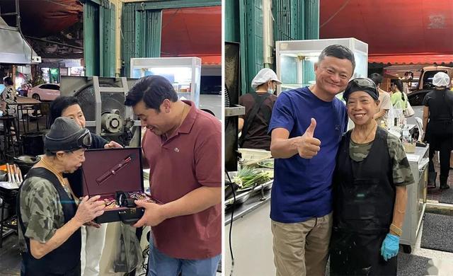 打卡马云同款米其林路边摊时,他又穿了一件红色同款↓