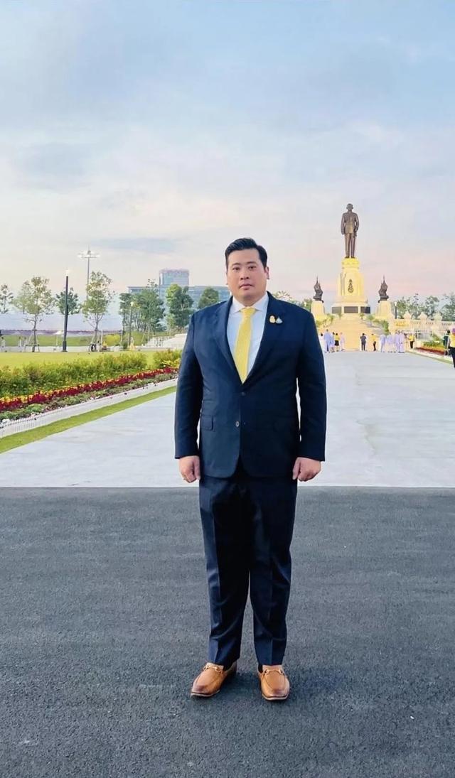 二王子的穿衣画风可谓一脉相承,正式场合各种精英style,在老泰王普密蓬纪念碑前打卡留念时,西装配油头很显精气神,脚上的Gucci马蹄扣皮鞋也很有腔调,明黄色领带还跟背景巧妙呼应上了。