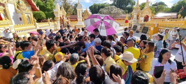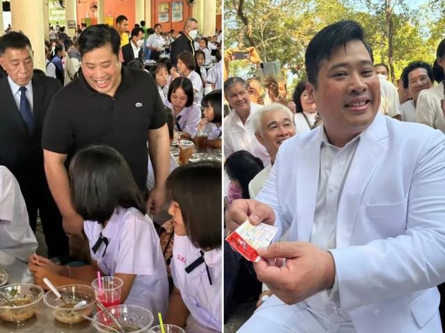 比她还拼还卷的,则是流亡海外27年的二王子瓦查拉松。这位42岁的律政精英,时隔四个月再次旋风回国,祭拜老泰王爷爷普密蓬,前往曼谷皇家寺庙布施捐款,将泰国人最看重的“孝”与“佛”精准拿捏。