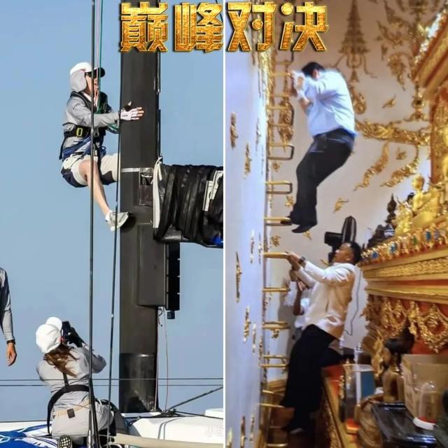 而豁出去,拖着沉重的身躯、冒着衣服炸线的风险实打实攀爬,怎么看怎么有点和徒手爬桅杆的苏提达较劲的意思。