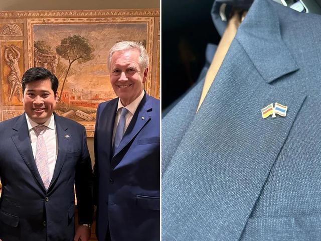 和德国前总统Christian Wulff合照时(两人交情不错,二王子还帮他写过自传序言),还特地晒了徽章特写寓意德泰友谊长存,有发言人那味了~