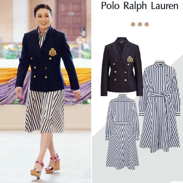 单独出公务时,苏提达这件Ralph Lauren双排扣,乍一看还以为和老公共享了衣橱,画风越来越女强人精英范了~