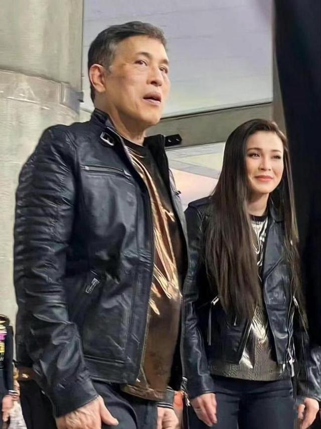 俩人今年确实没少穿情侣装,听演唱会这身情侣款机车皮衣就很拉风,bling bling的内搭,灵感莫不是来自金角大王和银角大王。歪个楼,苏提达的齐腰黑长直还有点惊艳,45岁依旧有少女感,玛哈同学别只顾着立正,能不能同步收个腹?