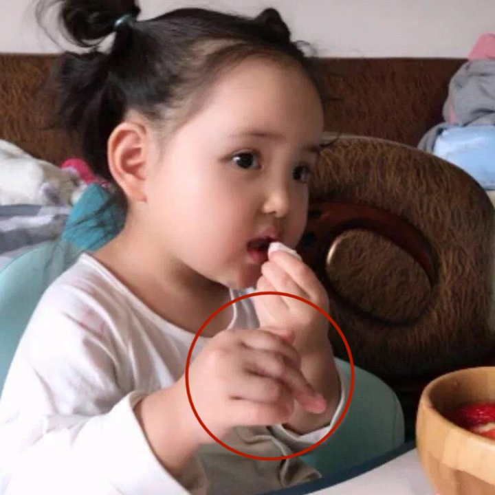 但其右手中指在其他手指蜷缩时,