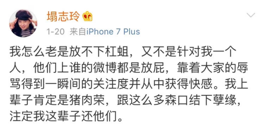 先是在文中回复他“low,自己一生都不会和他有交集,少操点心”,