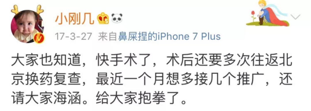 还告诉大家因为这件事情,自己要开始刷广告,给孩子攒钱看病。