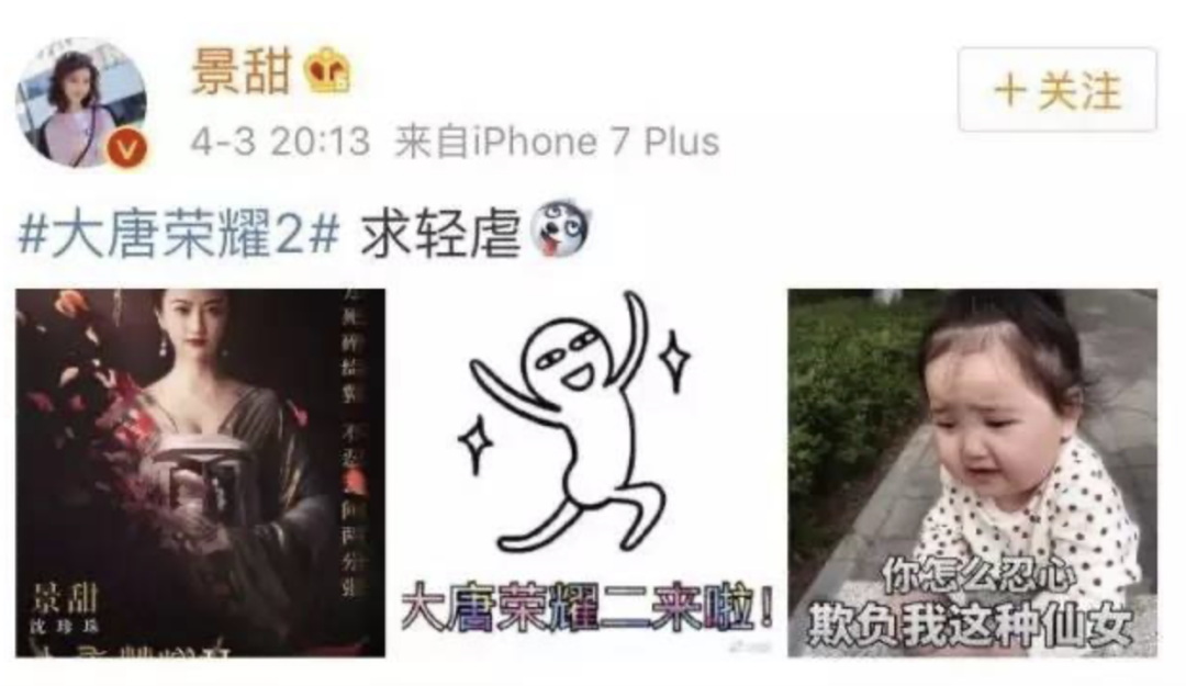 《大唐荣耀》播出时她发的两条微博最后都配有小刚几的表情包⬇️