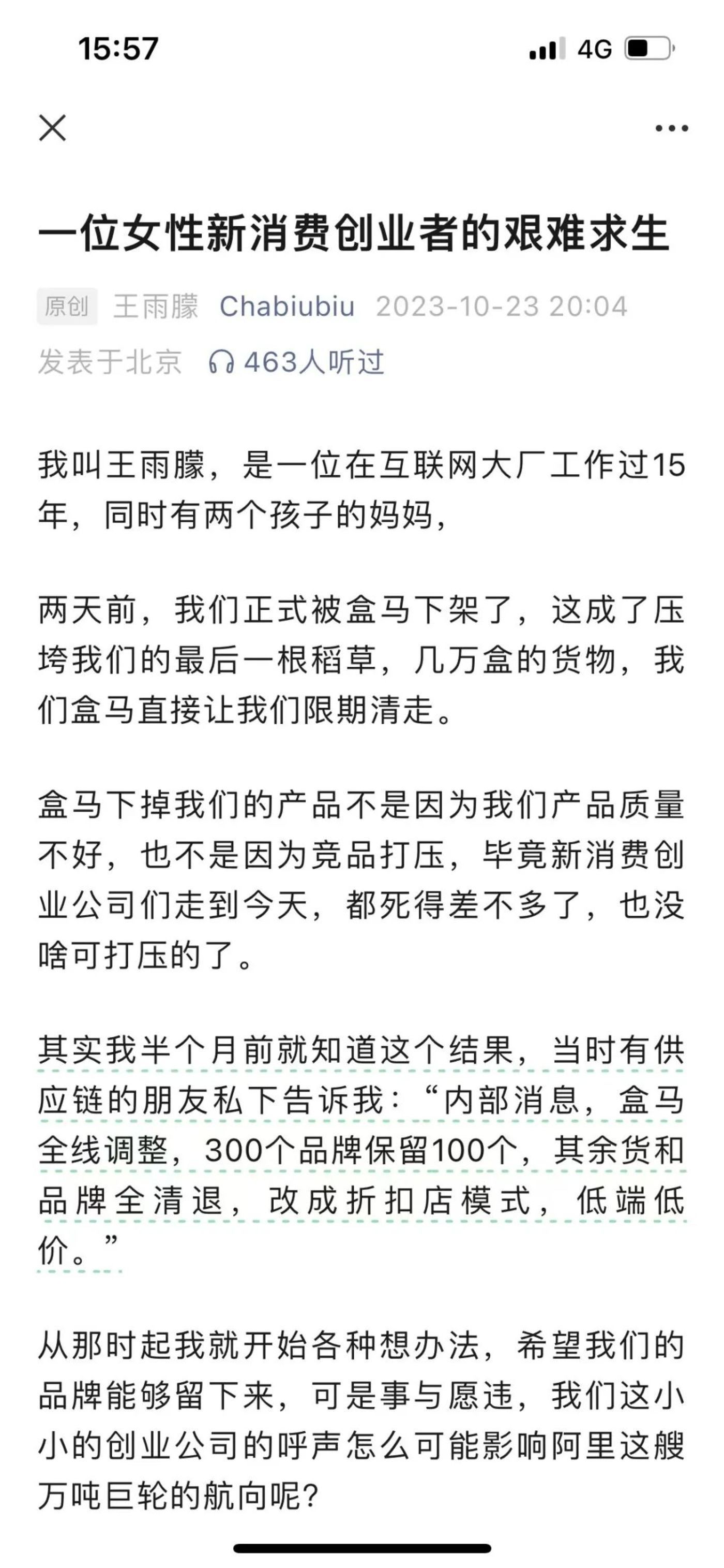 而在这场变革中看似受益最多的大众消费者,虽然被低价短暂吸引,但对品牌本身没太大粘性,“主打一个哪里便宜去哪里”。与此同时,盒马今年来频频爆出质检问题,价格便宜的同时质量是否过关,依然是大众消费者尤为关注的问题。