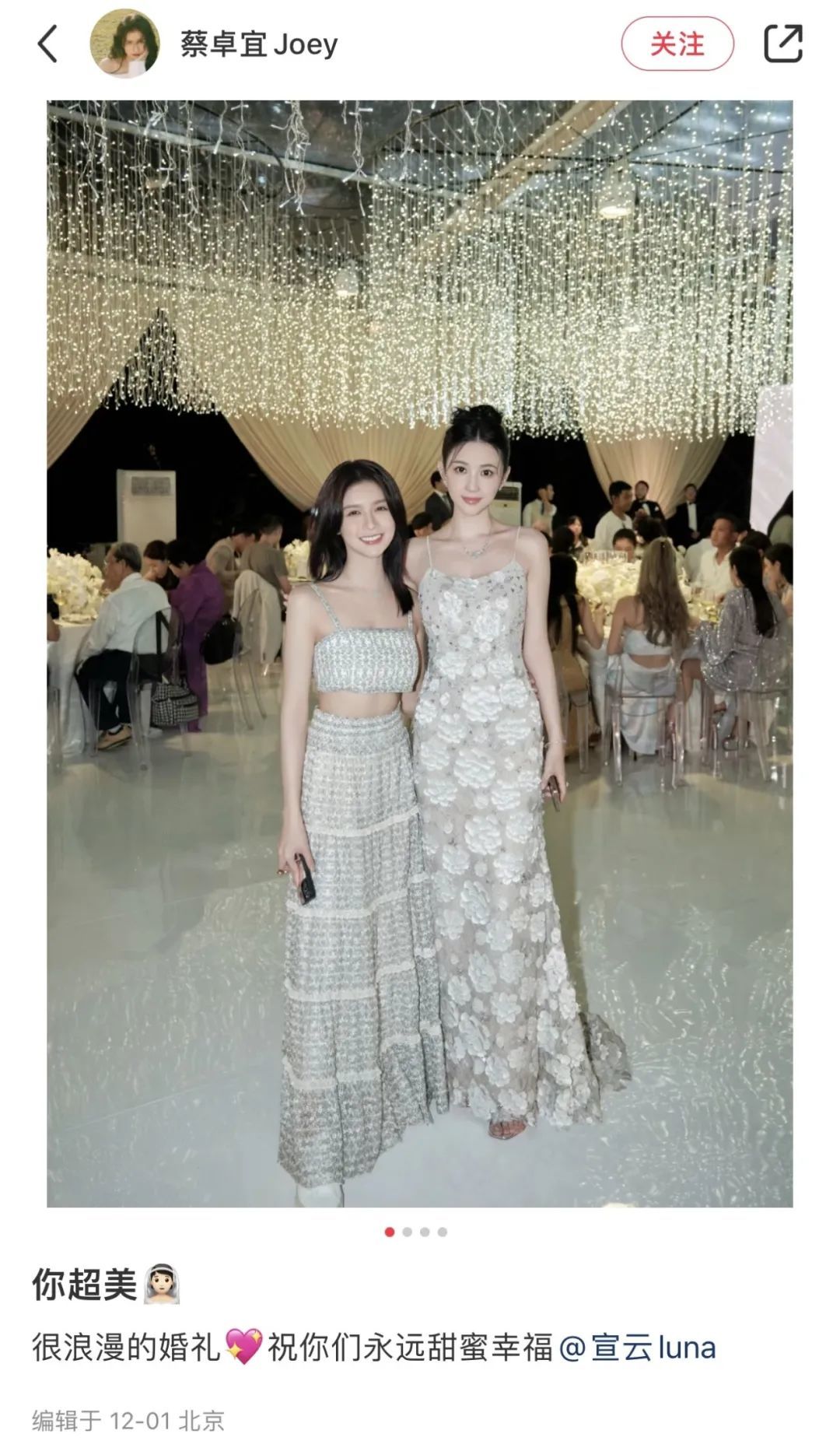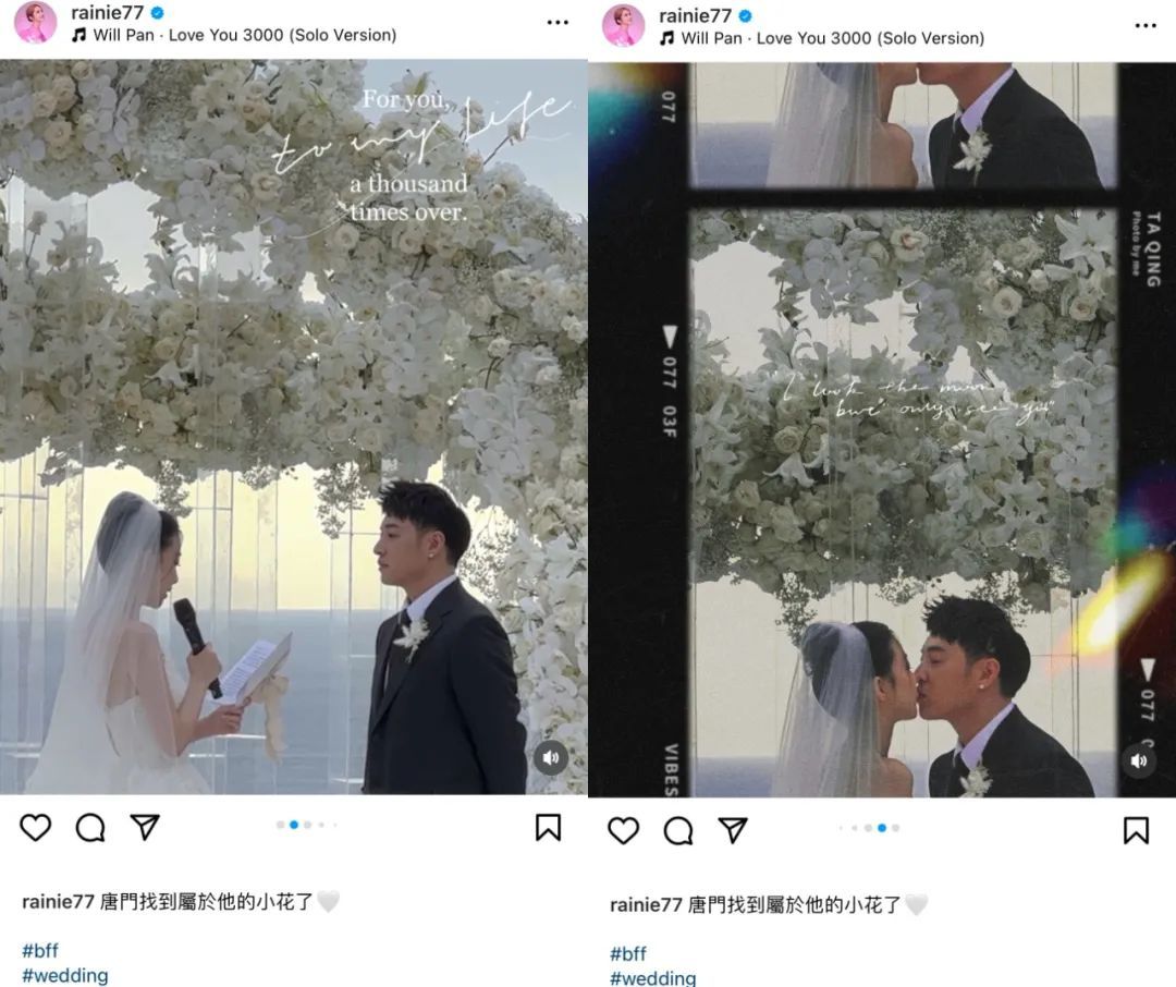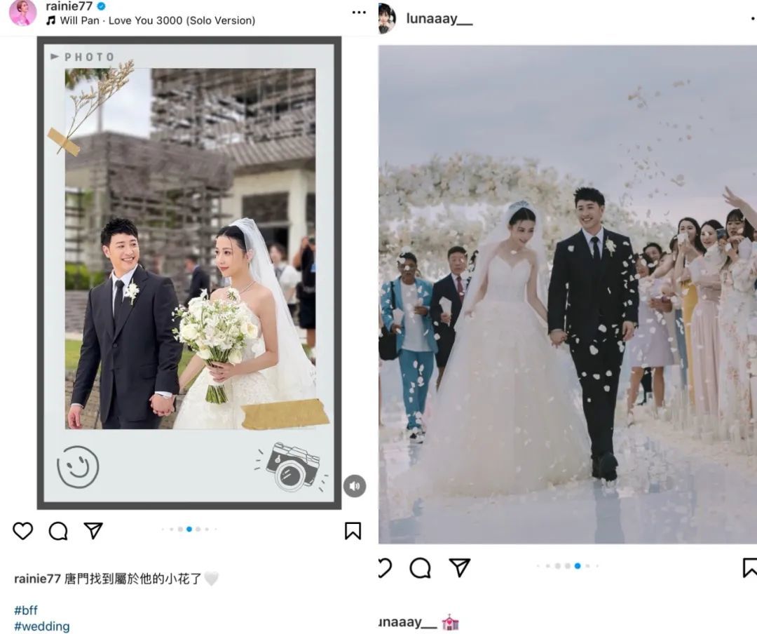 接着各路明星网红、婚礼参与者们开始陆续发图,让我们得以欣赏婚礼全貌。