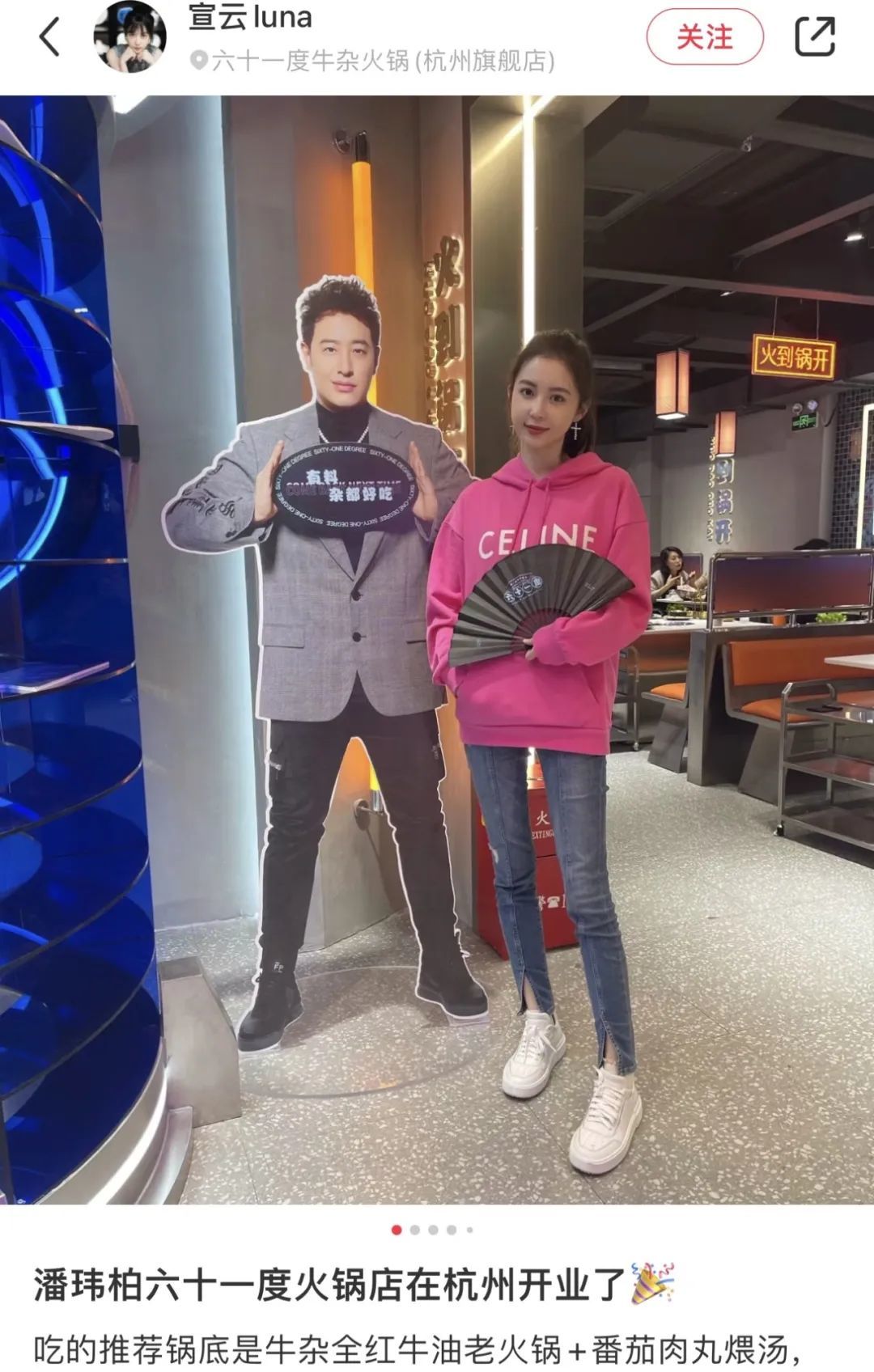 但可能是考虑到更多粉丝的心情,她的视频里始终没有出现过潘玮柏的身影,婚礼前唯一一次两人“同框”竟然是跟老公的人形立牌拍的,意在为他的火锅店做宣传……