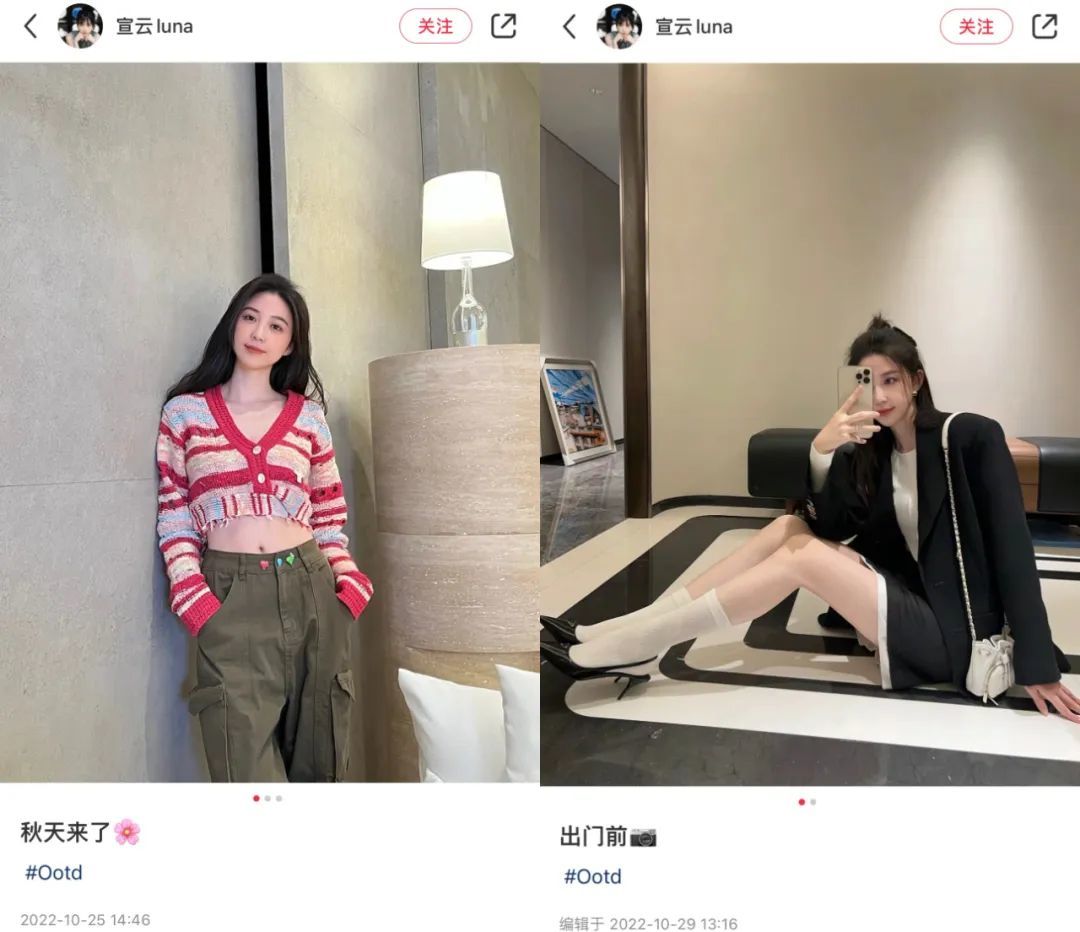 说起来,成为“小天王嫂”、半个公众人物后,宣云也算在努力经营着自己的社交平台,发些每日穿搭或者日常Vlog: