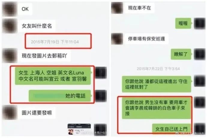 ▲ 有网友贴出了当时的聊天记录,注意看时间和内容,里面的细节我们不得而知,但潘玮柏好友李晨和韩帅的名字一出现,的确把可信度提高了几分(图源水印)。