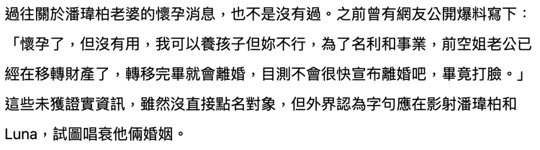 实际上,早在潘玮柏官宣前一年半,台媒就报道过他隐婚的新闻,当时还透露空姐女友已经身怀有孕。