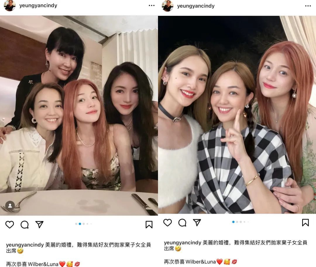 ▲ 她之前在社交平台晒过的合照里出现的几位明星名媛,也大多都参加了这次的婚礼,还能请到孟佳当伴娘,多少有些出乎大众意料。