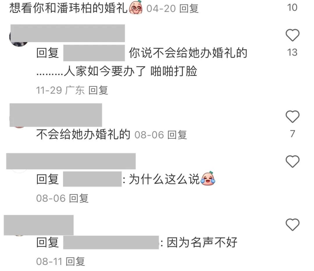 ▲ 当时评论区还有人留言说“(潘玮柏)不会给她办婚礼”,结果,啪啪打脸。