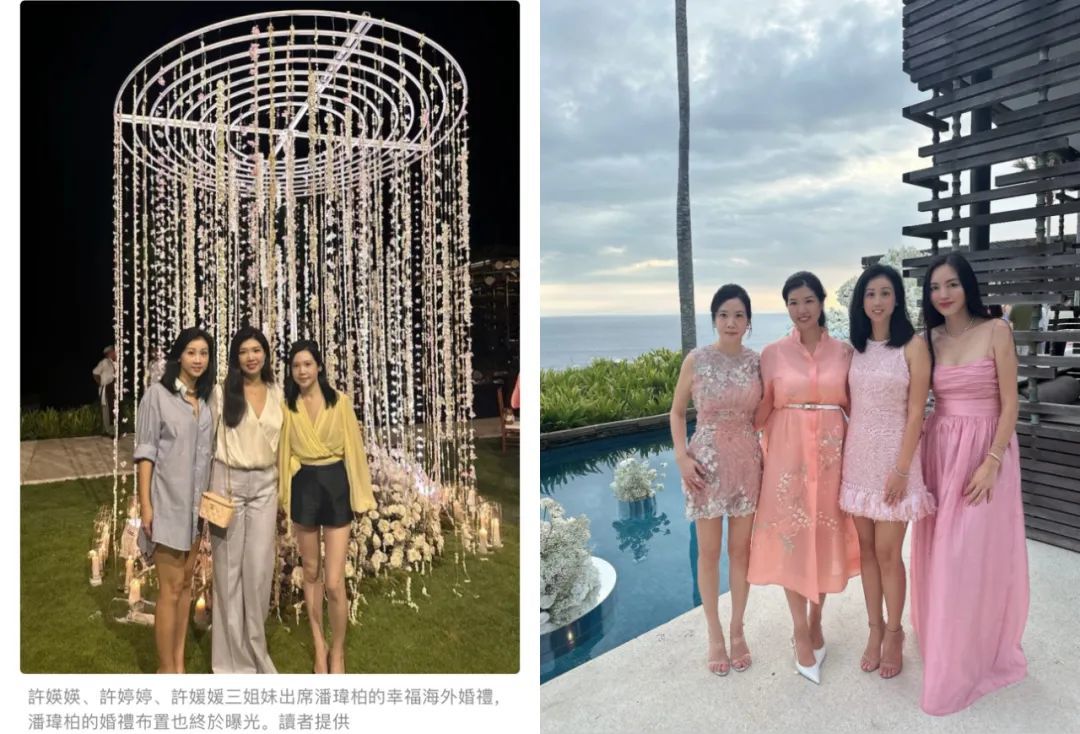 ▲ 左图的三位(从左到右)分别是:许媛媛、许婷婷、许媖媖,右图里多了位林牧洁。许婷婷的老公正是潘玮柏的弟弟潘玮楷。