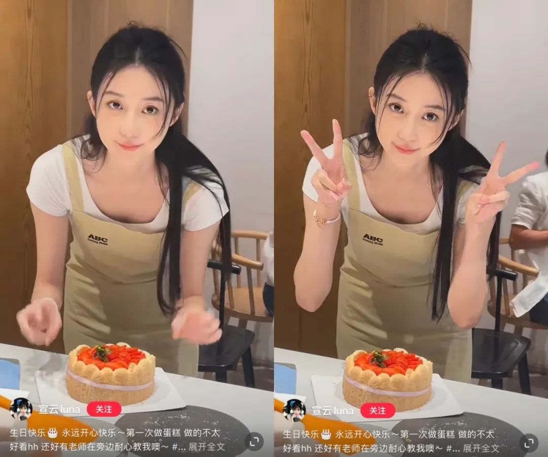也发过亲手为老公准备生日蛋糕的视频: