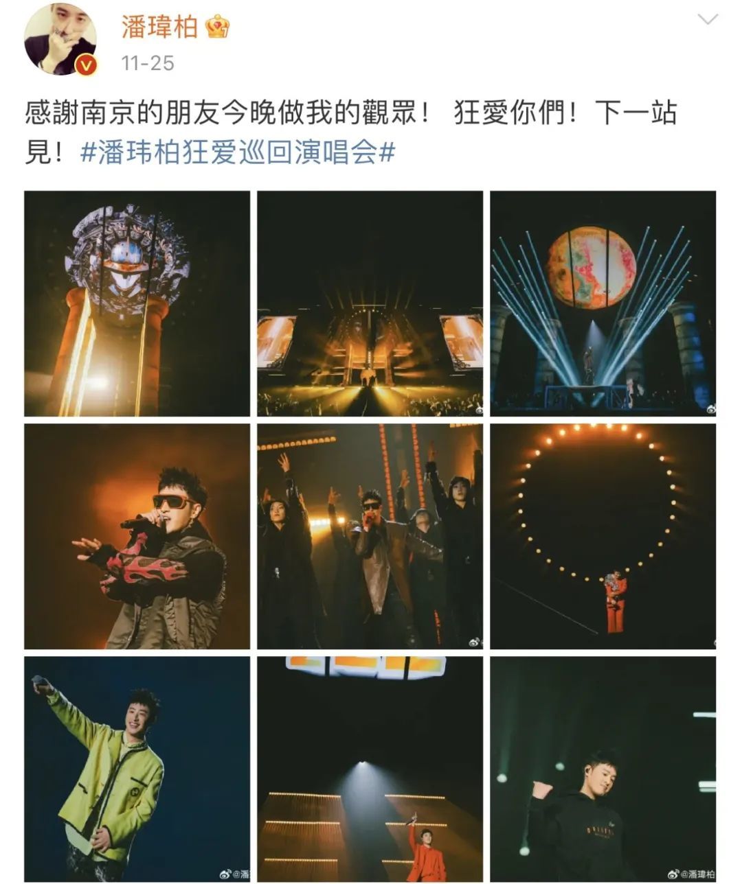 ▲ 11月25日,演唱会首站安排在了太太宣云的老家南京,之后留出一个礼拜的空档期完成婚礼,后又马不停蹄地继续开唱,行程安排得相当紧凑。