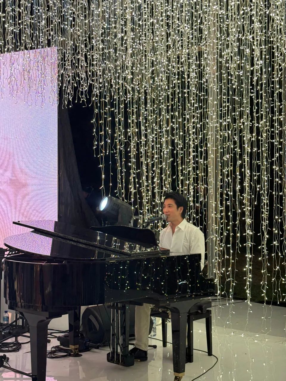 ▲ 但现场参与者们都表示,在致辞、交换戒指环节,新人双方很是感动,下图右边还能看到潘玮柏眼角的一滴泪(图源:水印)。