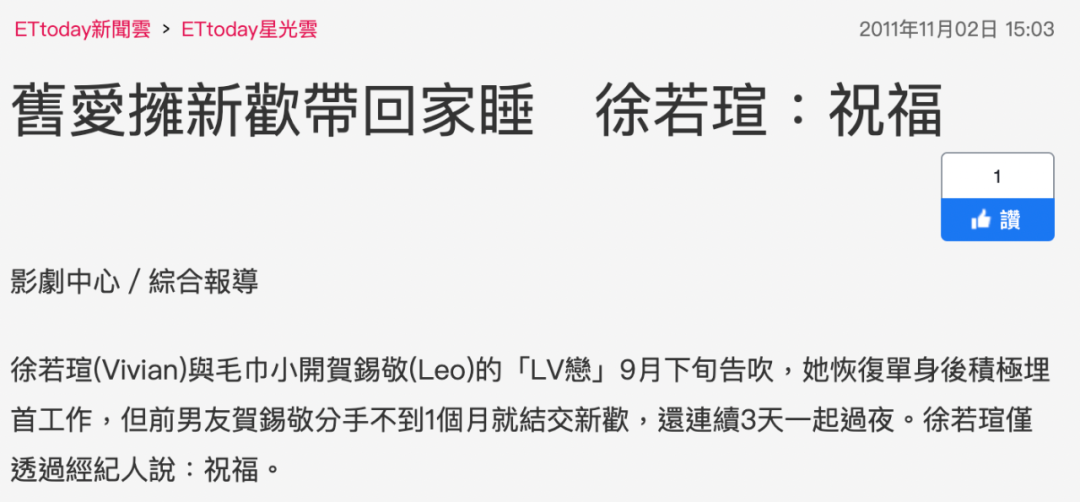 ▲ 2011年9月底,贺锡敬跟徐若瑄的恋情告吹后,很快就被拍到有了新目标。