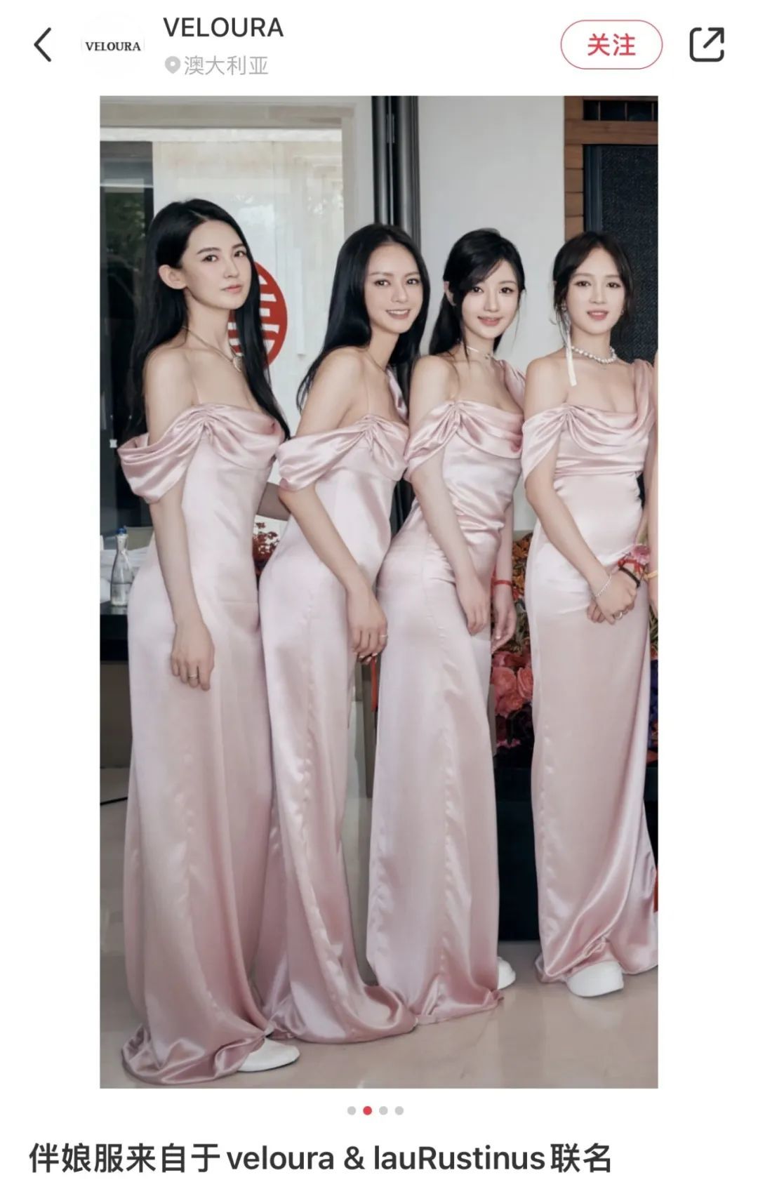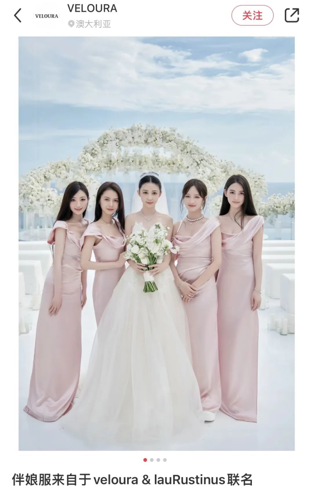 ▲ 当然也包括她自家服装品牌,跟设计师联名为伴娘们设计礼服。