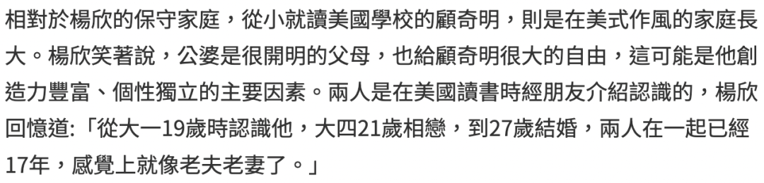 太太杨欣也是富二代出身,她的父亲是其利工业的杨明深。