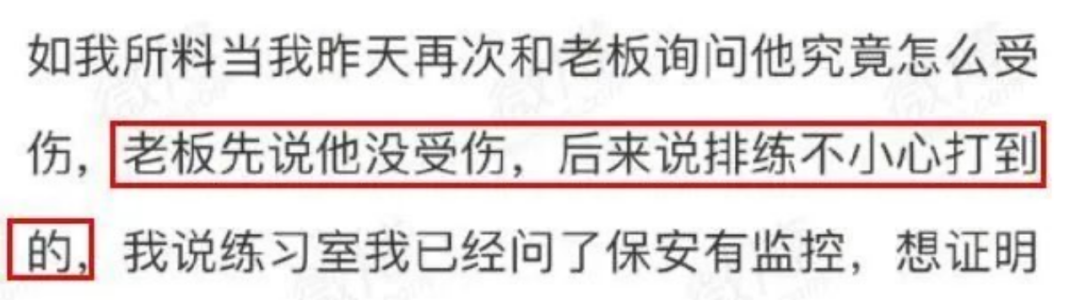 又改口说是练舞不小心打到的。