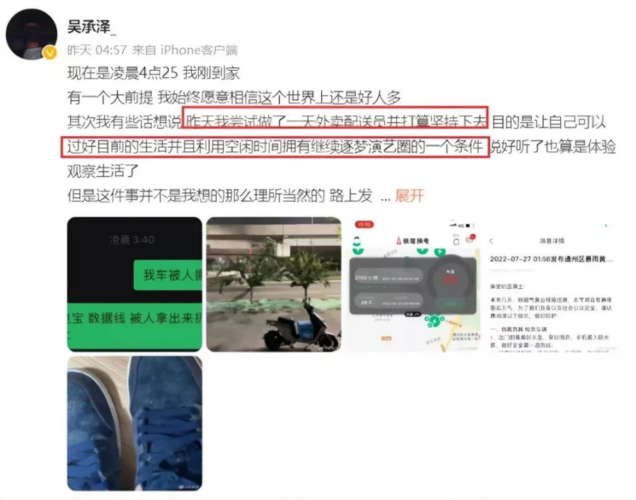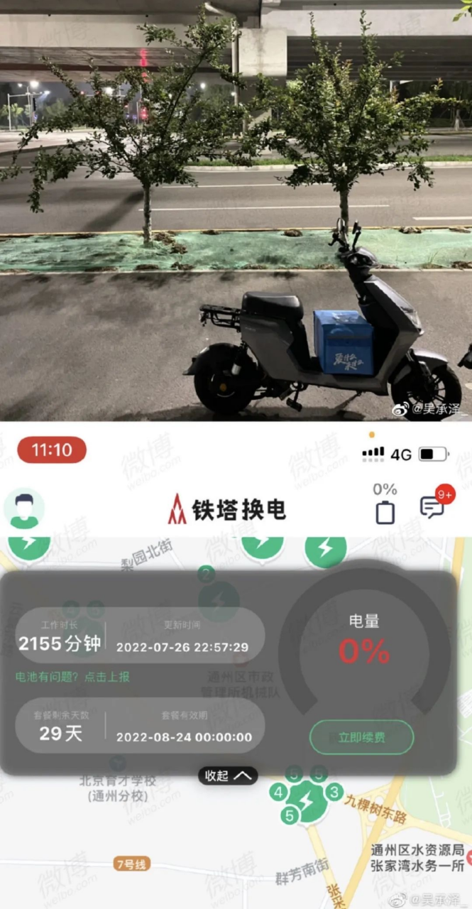 然而外卖送到一半,电瓶车没电了。